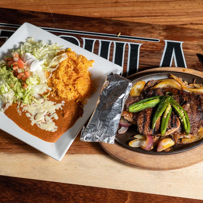 All fajitas are prepared with onions and bell peppers. Served with rice, beans, and guacamole salad. Choice of corn or flour tortillas. Choose up to three different meats. Meat choices: Steak, Chicken, Chorizo, Carnitas, Shrimp • Add extra Meat +$4.00 | Add extra Shrimp +$6.00